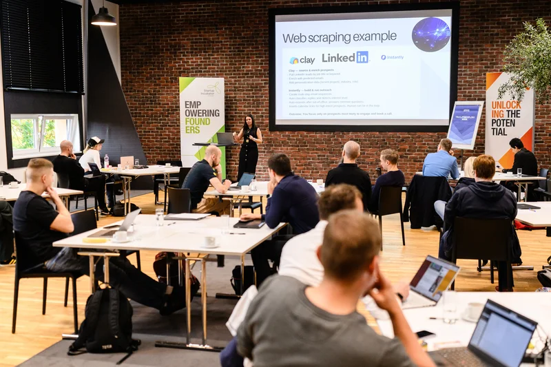 Kalev Kaarna, startup coach and former investor, then led a deep dive into scaling B2B sales. He guided founders in identifying sharp, urgent customer problems and positioning themselves as category leaders rather than simply competitors. Kalev highlighted that in B2B settings, founders are “selling change”, and the strongest barrier to adoption is often FOMU — the Fear of Messing Up. His frameworks focused on building clarity, credibility, and consistency in the sales process — and on using AI to understand customer intent more precisely rather than simply accelerating outreach volume.